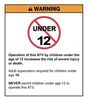 Every ATV made by our Members comes with a warning label, clearly stating the minimum age of the rider. Not sure where to look? This label is affixed so it can easily be read by the rider when seated in the proper operating position.